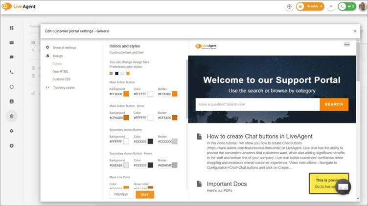 Top-rated client portals like LiveAgent come with many customization options and an user-friendly interface that makes using such options simple and transparent. Simply explore different templates until you find a solution that suits your brand.