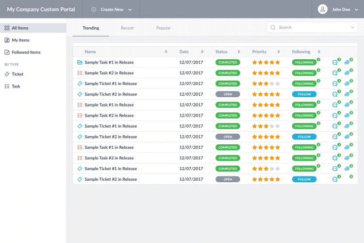 A megfelelő jegykövető rendszer lehetővé teszi az ügyfelek számára, hogy saját maguk kezeljék jegyeiket és kéréseiket. Az automatikus jegyosztással ügyfelei nyomon követhetik állásfoglalásukat, áttekinthetik a beküldött jegyeket, megtekinthetik a korábbi jegyeket stb.