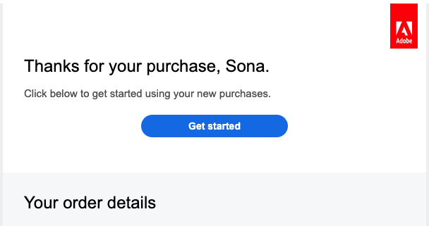 Ezt a megköszönő emailt azután küldik, amikor valaki vásárlást visz végbe és az ügyfele lesz. Ez az üzenet teljesíti az ügyfél lojalitás építésének célját és más releváns terméket is ajánl, ami érdekelheti azt az ügyfelet.