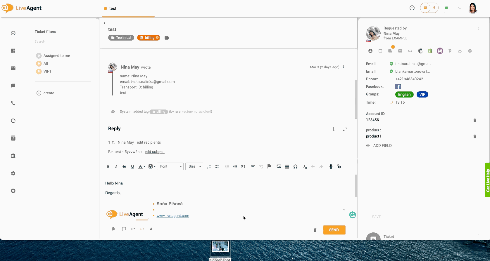 Ha formázni szeretné az e-mailjeit, az meglehetősen trükkös lehet – különösen akkor, ha képeket szeretne hozzáadni a szöveg bizonyos területeihez. A LiveAgent használatával azonban a kép beszúrása gomb vagy a másolás és beillesztés funkció segítségével sorban is hozzáadhat képeket. Kérjük, vegye figyelembe, hogy nincsenek korlátozások arra vonatkozóan, hogy milyen fájltípusokat lehet e-mailben küldeni.
