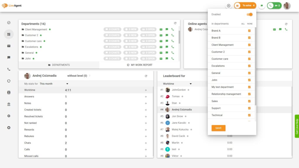 - Jelentkezzen be a LiveAgentbe.