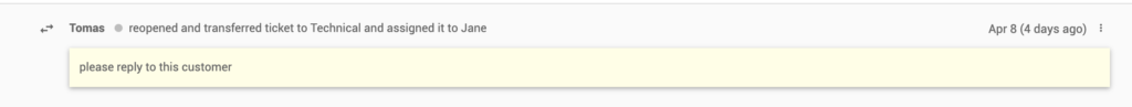 - Amikor egy ügyfél válaszol a hozzárendelt jegyre