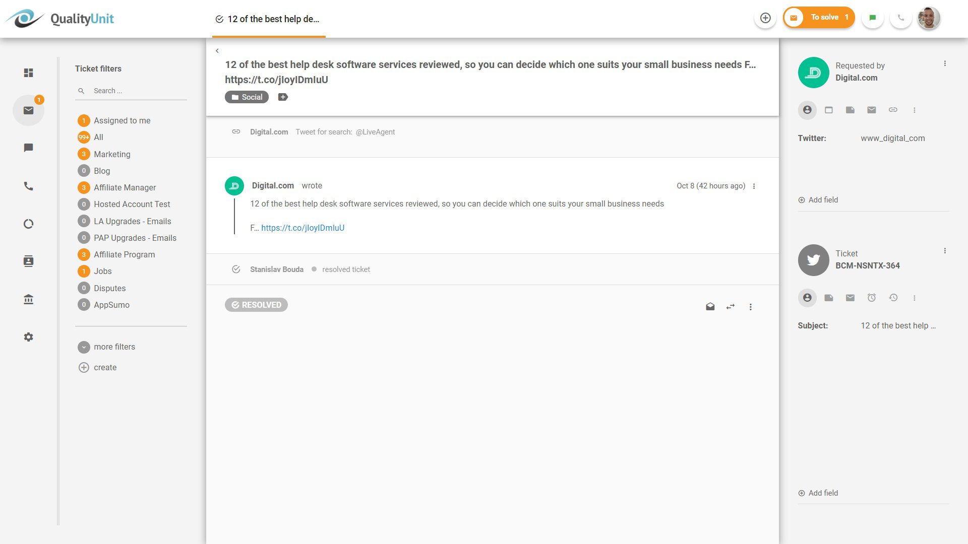A LiveAgent közösségi média címkézést kínál.