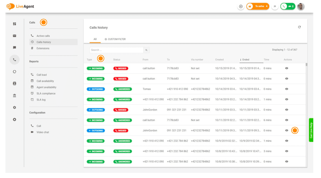 A LiveAgent korlátlan hívásrögzítést kínál.