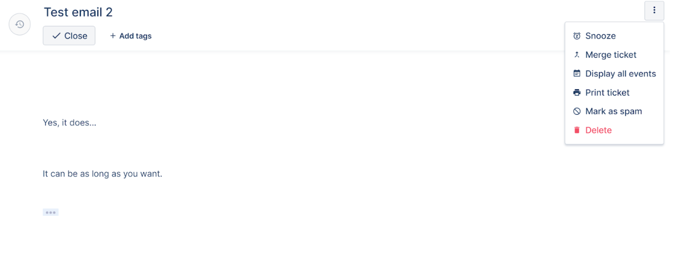A Gorgias egyéb funkciókat is kínál, például jegyek felosztását, szundizást, SPAM-jelölést és még néhányat. Adott csapatokhoz címkéket adhat hozzá, vagy jegyeket rendelhet hozzá. Nem találtam semmilyen jegyosztási funkciót vagy semmi extrát. Bár ezek a funkciók elegendőek ahhoz, hogy hatékonyan kommunikálhasson és kezelje a megkereséseket a jegykiadáson keresztül, jó lenne néhány további funkció is a bonyolultabb problémamegoldás érdekében.
