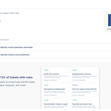 Mindegyik csomag hozzáférést biztosít a jegykezeléshez e-mailen, élő csevegésen, hangon, SMS-ben, Facebookon és Instagramon. A Twitter csak a két legdrágább csomagban érhető el. Ezenkívül körülbelül 94 alkalmazásintegrációhoz jut hozzá minden csomaghoz, ami nagyon hasznos lehet. A Gorgias különféle automatizálásokat is kínál minden csomaghoz, valamint statisztikai és elemzési funkciókat, amelyek mindig elérhetők.