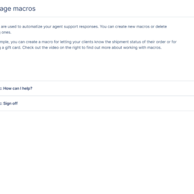 Nyissa meg a Gorgias beállításait, és válassza a Makrók lehetőséget az Automatizálás részben. Itt hozhat létre olyan makrókat, amelyek bizonyos feltételek teljesülése esetén automatikus e-maileket küldenek. Írhat saját szöveget, és több olyan művelet közül választhat, amelyek az automatikus válasz kiváltójaként szolgálnak. A Gorgias lehetővé teszi, hogy meglévő makrókat töltsön fel CSV formátumban, ha van ilyen.