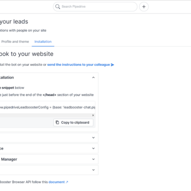 Hogyan adhatok hozzá egy PipeDrive élő csevegést chatbot nélkül a webhelyemhez?