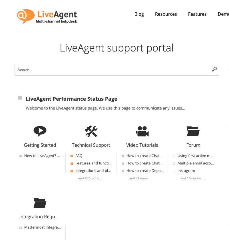 A LiveAgent számos funkciót kínál, amelyek segítségével a vállalkozások kapcsolatba léphetnek az ügyfelekkel. Az erőforrások hatalmas könyvtárát is kínálja ügyfelei számára. Ezek a források közé tartoznak a blogbejegyzések, sablonok, szószedetek, gépelési tesztek, WordPress bővítmény, könyvtárak, webináriumok, akadémia és még sok más.